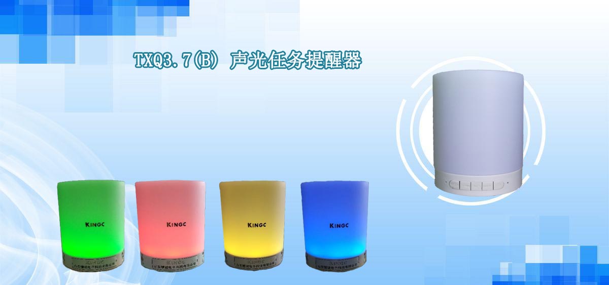 TXQ3.7(B) 声光任务提醒器,采用WiFi模块,内部集成音频模块,并通过PWM控制RGB三色灯。产品可通过wifi连网,接收应用服务发送的控制命令,显示不同的灯光颜色,并播放在线mp3语音文件,实现声光任务提醒目标。本产品适用于企业、工厂等企事业单位的办公室中,以实现任务的及时提醒,提高工作效率,防止关键以及紧急事件的遗漏和延误。
